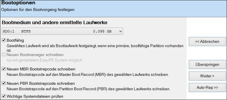 neuen PBR Bootstrapcode schreiben diese Option wird immer gewählt, so dass sichergestellt wird,
