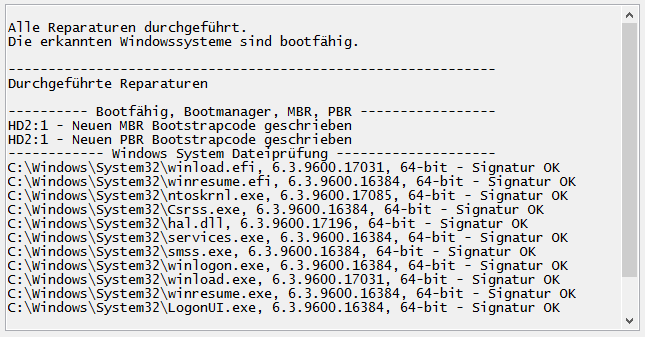 Wurden alle Reparaturen durchgeführt erfolgt eine weitere Prüfung der Bootumgebung.