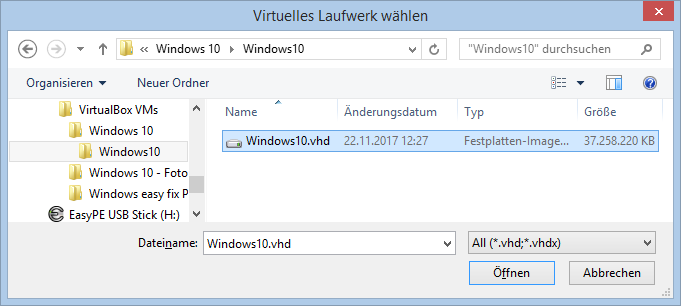 EasyMount mountet eine gewählte VHD/VHDx Datei...
