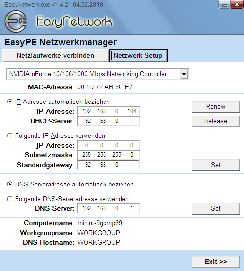Das Programm EasyNetwork.exe kennt zwei Modi.